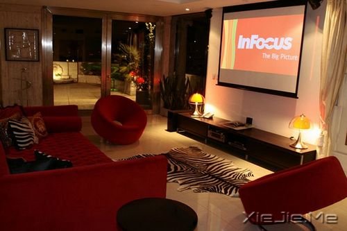 客厅里最重要的就是投影机和音质超好的音响,下雨天可以窝在沙发上看电影或听音乐,尽情沉溺。